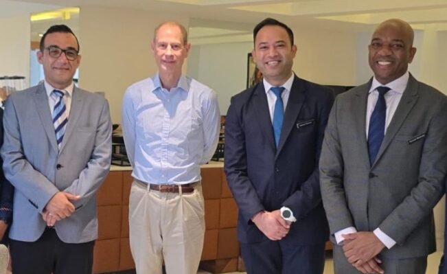 L-R : Restaurant Manager ,Lagos Continental Hotel ( L,CH) Mahmoud Chaabo ,Duke of Edinburgh,Prince Edward , Director of Food and Beverage, Neeraj Ramani , and Cluster Director of Sales and Marketing, Richard Mutanda at the hotel following a series of events in Lagos , Nigeria ,aimed at championing the expansion of the Duke of Edinburgh International Award worldwide.